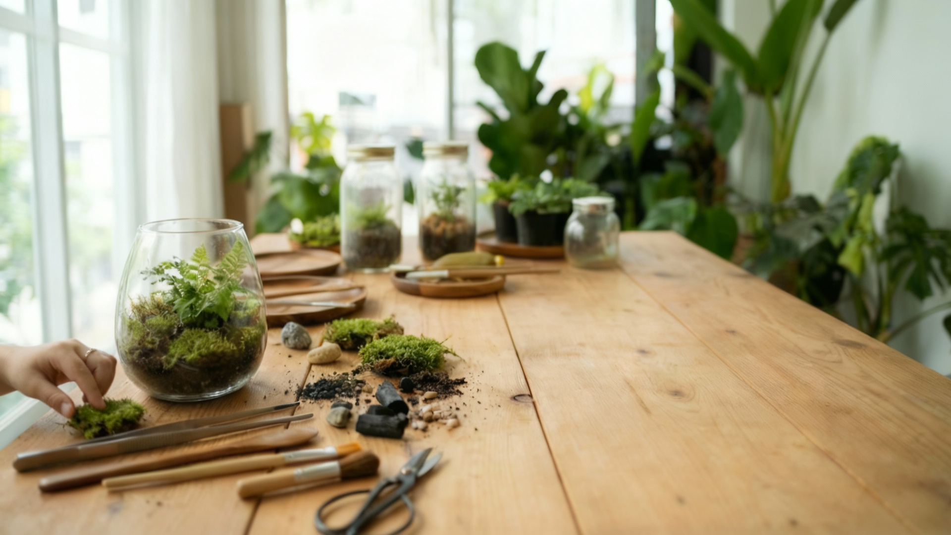 From the hands, a living ecosystem slowly takes shape.